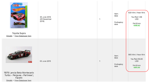- Gains and Losses - With a hobbyDB Premium membership, you can track the percentage change in the value of your items in your collection based on what you originally paid.
